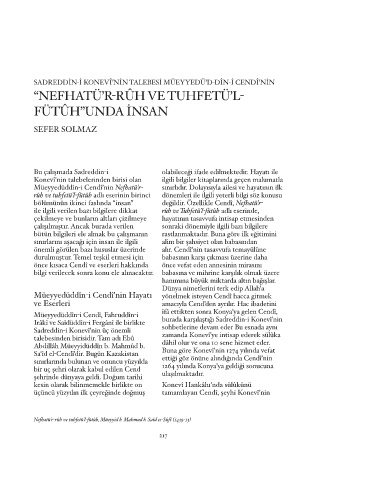 SADREDDİN-İ KONEVÎ’NİN TALEBESİ MÜEYYEDÜ’D-DÎN-İ CENDÎ’NİN