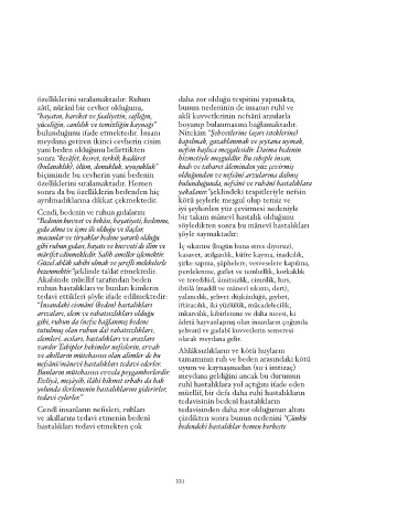 özelliklerini sıralamaktadır. Hemen bulunduğunda, nefsânî ve ruhânî hastalıklara