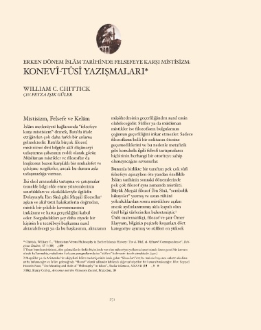* Chittick, William C., “Mysticism Versus Philosophy in Earlier Islamic History: The al-Tūsī, al- Qūnawī Correspondence”, Reli-