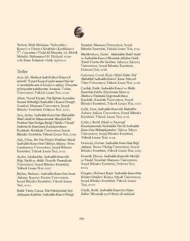 Konevî ve Fihrist-i Kitabhâi-i Kitâbhâne-i Bilimler Enstitüsü, Yüksek Lisans Tezi, 2013.
