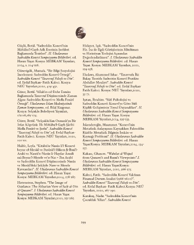 Sempozyumu Bildirileri. ed. Hasan Yaşar. Karakuş, Nadir. “Sadreddin Konevî’nin